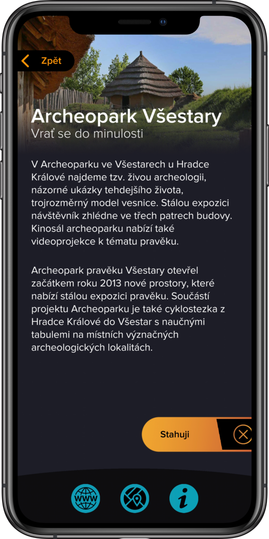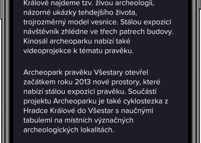 Návštěvníci Archeoparku ve Všestarech u Hradce Králové si ode dneška mohou užívat pravěk na vlastní kůži. Díky rozšířené realitě v moderní aplikaci Visit More se prostřednictvím mobilních telefonů seznámí s tím, jak žili naši předci. Za vývoj aplikace kraj zaplatil 500 tisíc korun.
