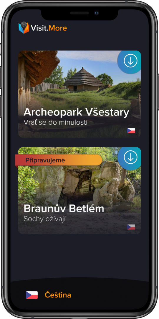 Aplikace Visit More je ke stažení zdarma pro všechny návštěvníky, funguje pouze v archeoparku. Doplňuje tak zážitkový program objektu, mimo jiné ukázky dobových řemesel, obyčejů, architektury a podobně.