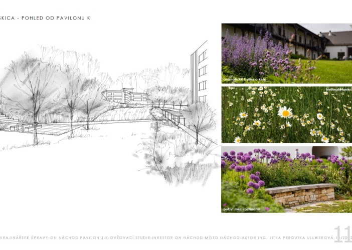 Ještě do konce letošního roku by mohla být dokončena léčebná zahrada. Stavební práce a krajinářské úpravy budou stát celkem 14,3 milionu korun. Projekt, který vzniká v dolním areálu mezi nedávno dokončenými pavilony J a K, získal podporu z evropského IROP2.