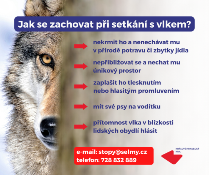 Další podrobnosti a rady, jak se v případě setkání s vlkem chovat, lze najít na www.navratvlku.cz.