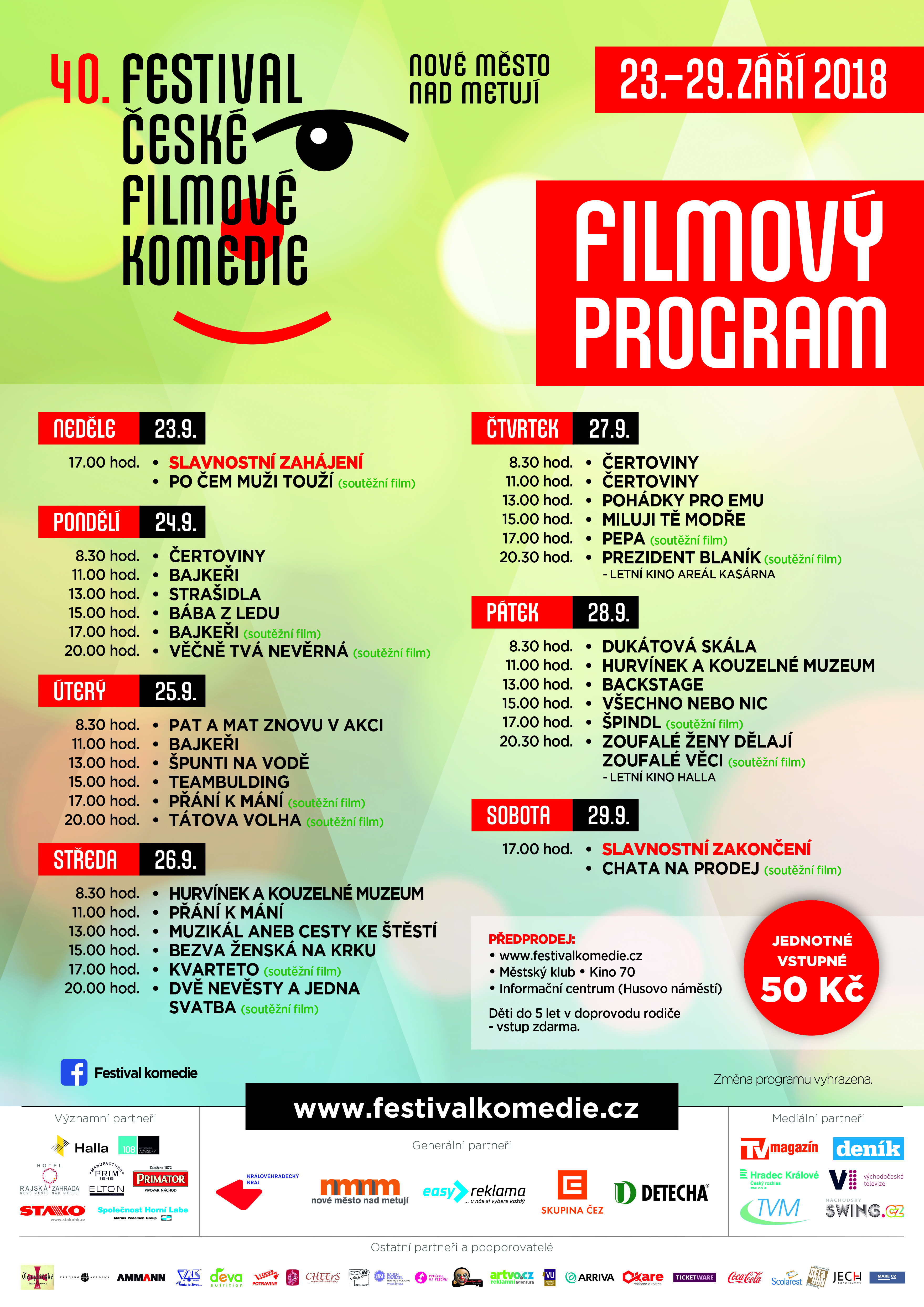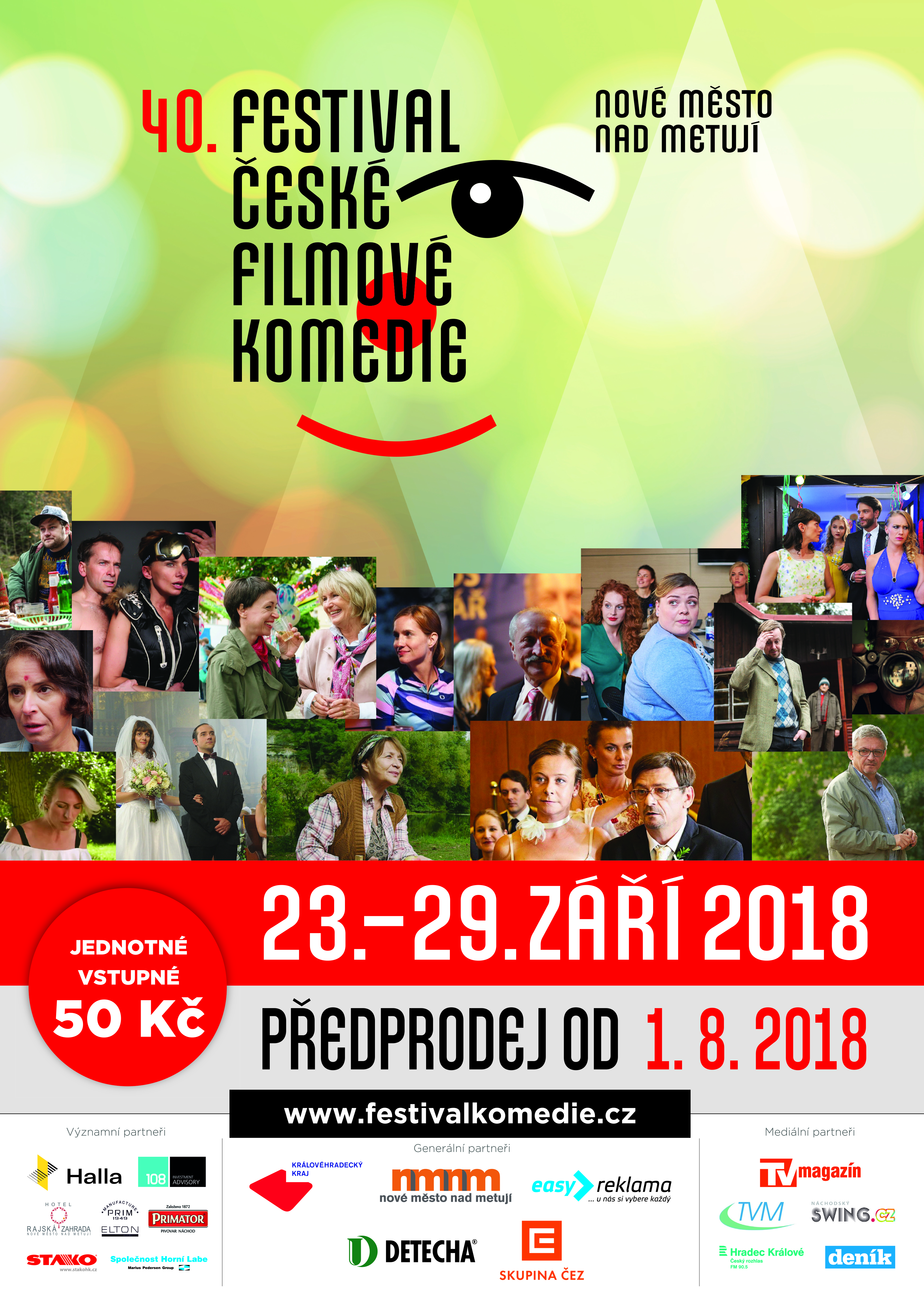 Týden plný smíchu a zábavy si můžete užít poslední zářijový týden v Novém Městě nad Metují. Začal předprodej vstupenek na jubilejní 40. festival české filmové komedie. Letošní nabídka festivalu, který proběhne 23. září až 29. září v Kině 70, svým programem láká milovníky smíchu všech generací. Hejtman kraje Jiří Štěpán převzal nad akcí záštitu a kraj festival finančně podpořil.