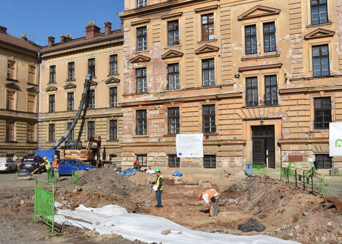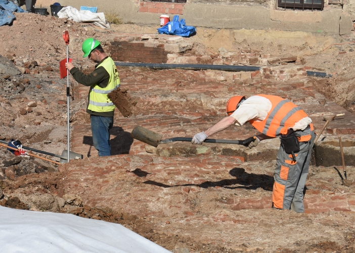 Práce stavařů se nyní zaměřila na objev pozůstatků pětiúhelníkové hradby (bastionu), která částečně zasahuje do prostoru plánované přístavby.