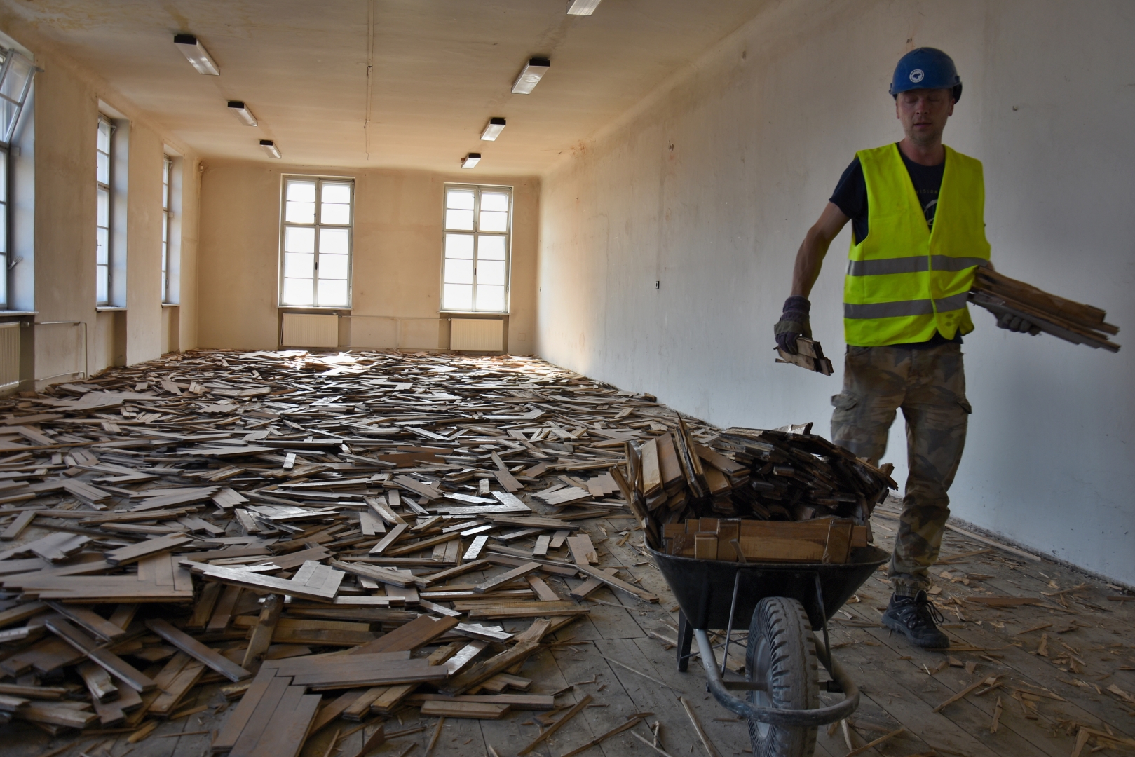Řemeslníci vymění 32 656 kusů střešních tašek – srdcovek, zrepasují nebo rovnou vymění 343 oken a 163 dveří. Barva omítky zdobená reliéfy a římsami bude kopírovat původní odstín. Veškeré poškozené plochy i řada zdobných prvků ve zdivu i v omítce budou obnoveny, aby se přiblížily původnímu stavu objektu.