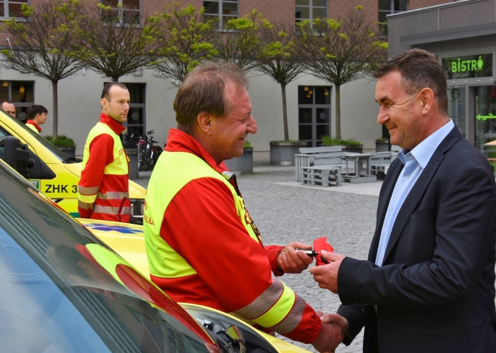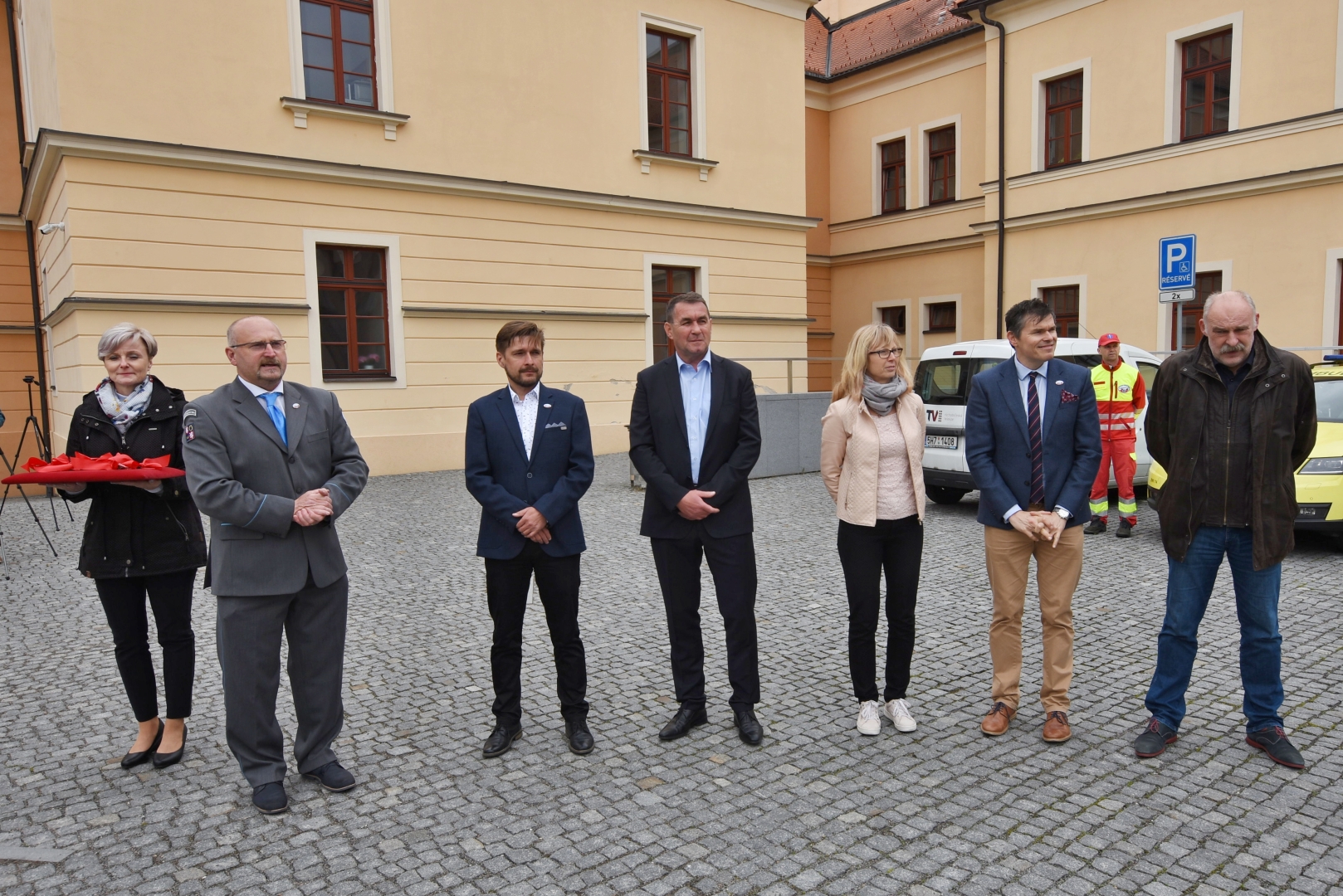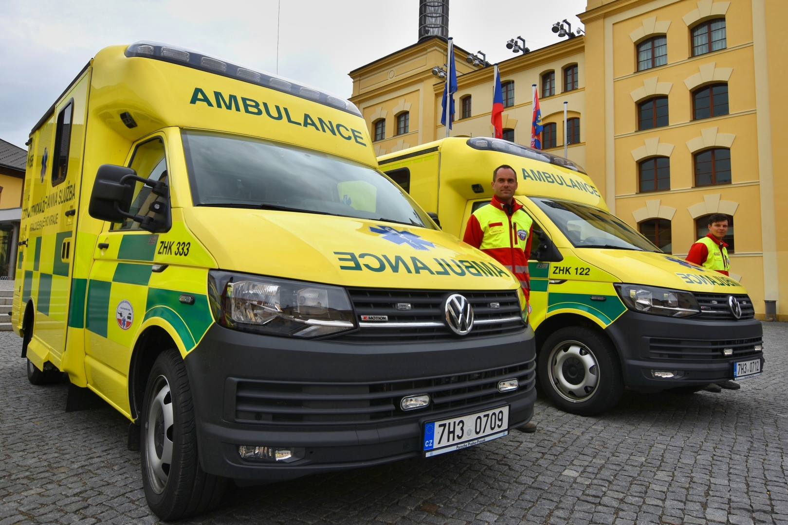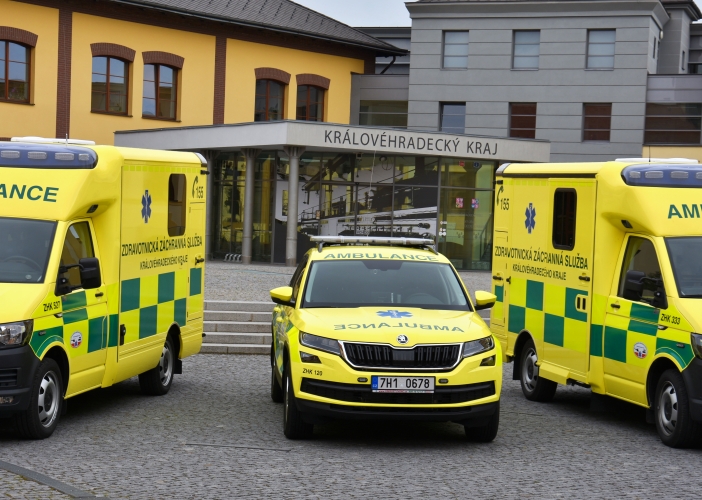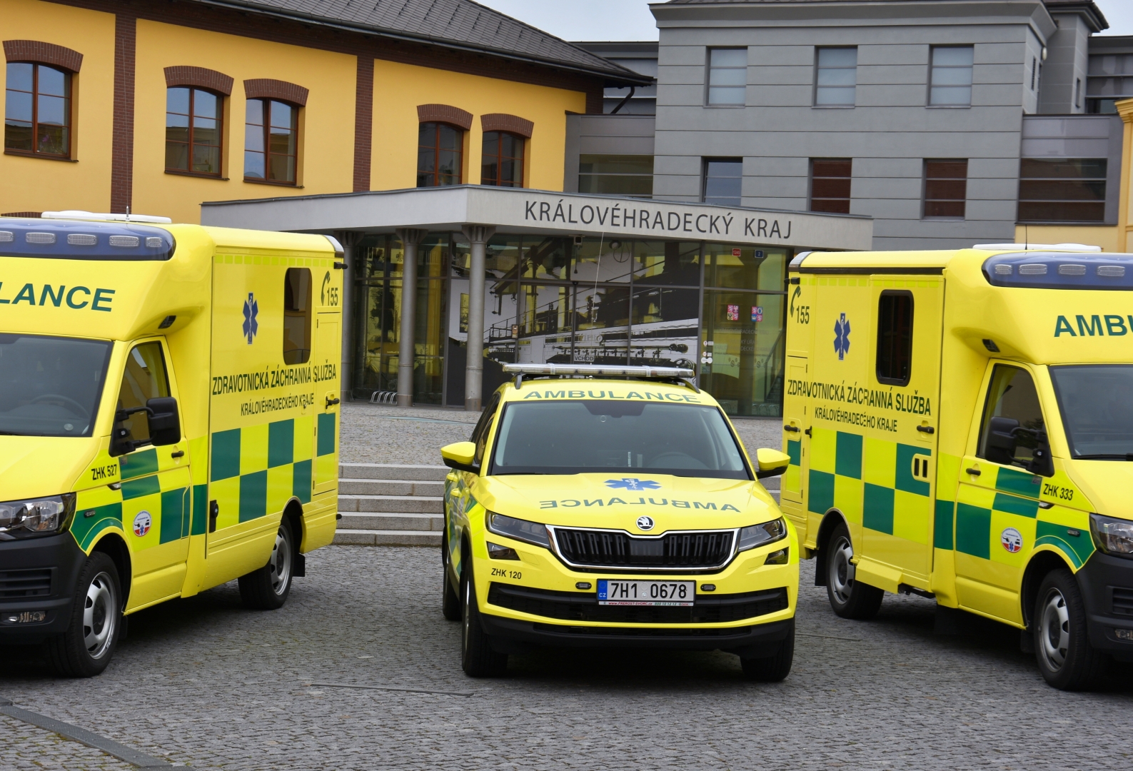 Čtyři velké a jeden malý sanitní vůz míří na výjezdové základny Zdravotnické záchranné služby Královéhradeckého kraje v Hradci Králové, Jaroměři a Jičína. Klíče od nových vozů dnes záchranářům předal náměstek hejtmana pro zdravotnictví Aleš Cabicar.