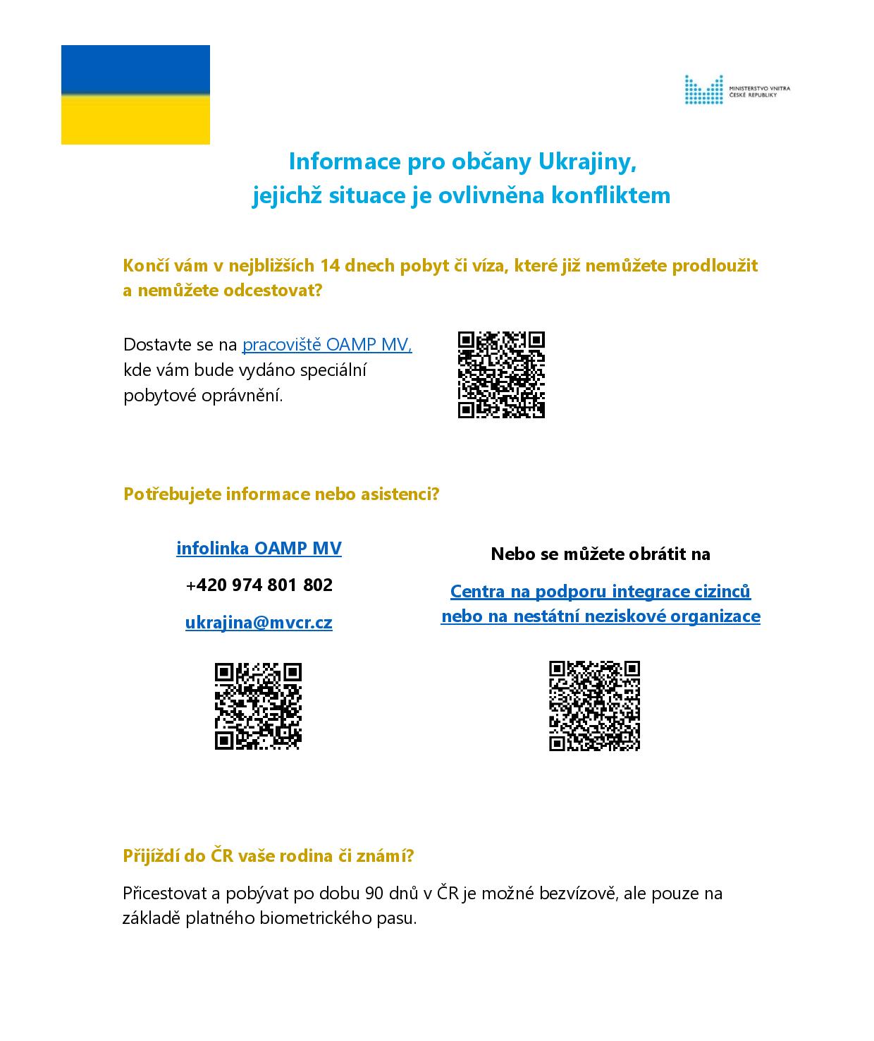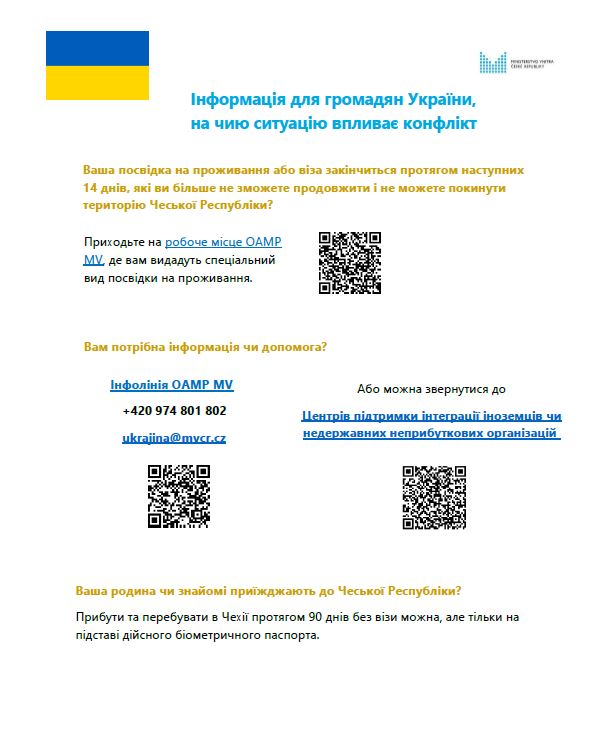 Інформація для громадян України в Чехії у зв'язку з конфліктом в Україні (Informace pro ukrajinské občany na území ČR v návaznosti na konflikt na Ukrajině.)