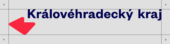 Logotyp je tvořen ze dvou na sebe navazujících ploch přesně definované proporce. V horní části je umístěno písmové označení Královéhradecký kraj z písma Founders Grotesk. Ochranná zóna loga definuje minimální prostor kolem logotypu, kam nelze nic dalšího umísťovat. Doplňkové texty, fotografie či jiné logotypy je nutné umístit až za tento vytyčený prostor. Ochranná zóna logotypu je definována pomocí jednotky x, která odpovídá velikosti jedné strany symbolu.