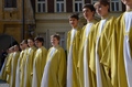 Do katedrály sv. Ducha na náměstí Jana Pavla II. uvedl prezidenta Zemana a hejtmana France královéhradecký biskup Jan Vokál. "Zážitkem bylo jen vstupovat do katedrály, obklopeni chlapeckým sborem Boni Pueri," řekl hejtman Franc. Jejich Ave Maria zněla gotickým chrámem po třetí hodině odpolední a nebýt kamer a fotoobjektivů, bylo to vytržení z reality, kterou každý z přítomných v té chvíli vnímal. "Uvedomuji si význam církve pro náš národ i společnost. S kardinálem Dukou často hovoříme o úloze hospiců. Myslím si, že právě církev by měla umožnit lidem důstojné umírání," vyjádřil své prezident Zeman, který v katedrále vyslechl modlitbu za arcibiskupa Karla Otčenáška. K jeho pamětní desce poté položil květiny.