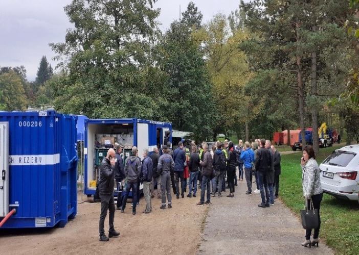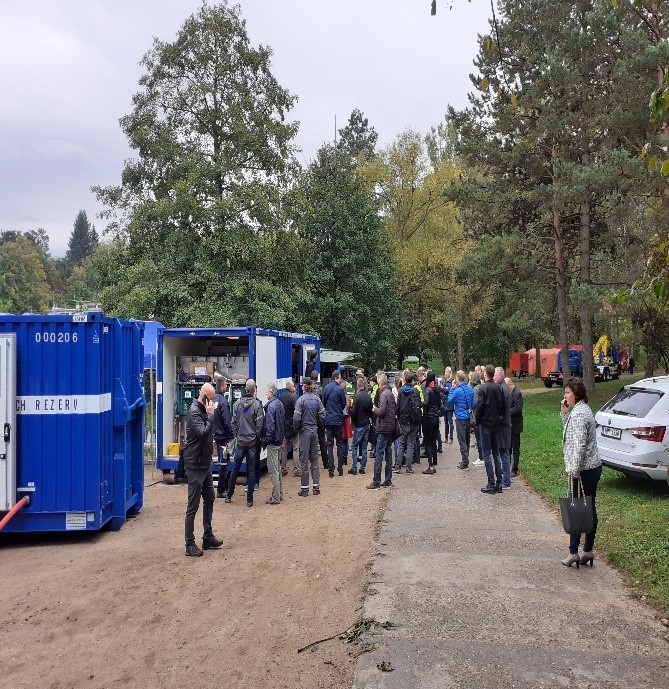 V průběhu ukázkového dne 2. 10. 2019, určeného pro pracovníky krizového řízení jednotlivých ministerstev, krajských úřadů a dalších subjektů podílejících se na výše uvedené problematice, proběhl seminář k systému nouzového zásobování pitnou vodou s odbornými prezentacemi. Následovala praktická ukázka provozu instalované techniky a závěrečná diskuse k dané problematice mezi zúčastněnými zástupci jednotlivých subjektů.