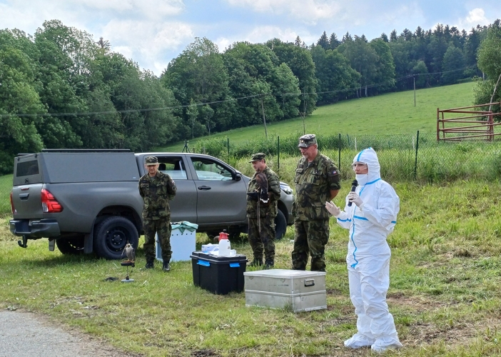 Průběh cvičení byl stejně jako v minulých letech velmi zajímavý, v teoretické části jednotliví přednášející přesně popisovali současnou nákazovou situaci na území našeho státu i v okolních zemích z pohledu jednotlivých veterinárních odborností, praktická část pak byla kromě tradičních ukázek zjišťování nebezpečných nákaz u zvířat obohacena o zajímavou ukázku příslušníků ornitologické služby AČR.