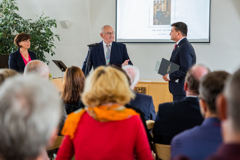 Jan Slavík se po celý svůj profesní život věnoval obnově historických objektů v Královéhradeckém kraji. Zvlášť blízká mu byla v minulosti významná a později zcela opomíjená krajina Broumovského výběžku. Svou pozornost ale věnoval i dalším architektonickým a historickým skvostům našeho regionu. Díky jeho neúnavné a obětavé práci byla zachráněna řada významných památek, často i téměř v poslední chvíli. Svou celoživotní činností tak pan Slavík nesporně přispěl a v rámci možností i nadále přispívá k oživení a ochraně kulturního dědictví a jeho zachování pro další generace.