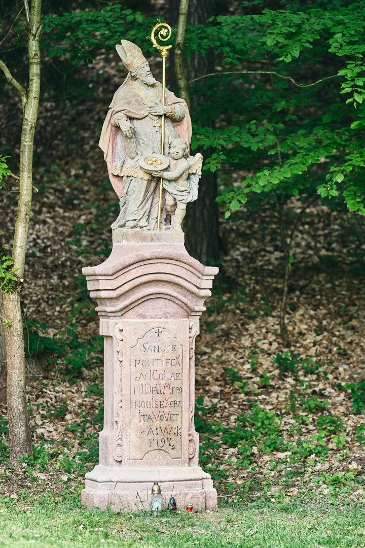 „Nevíme, kdo je autorem, ale rukopis dílny Matyáše Bernarda Brauna je zřejmý. Socha sv. Mikuláše na samé hranici úbislavické a novopacké farnosti vítala nebo se loučila s lidmi, kteří přicházeli nebo odcházeli. Cesta, která okolo vede je prastará spojnice Úbislavic a Nové Paky právě od roku 1794,“ říká Mgr. Ivan Plachý, starosta obce.