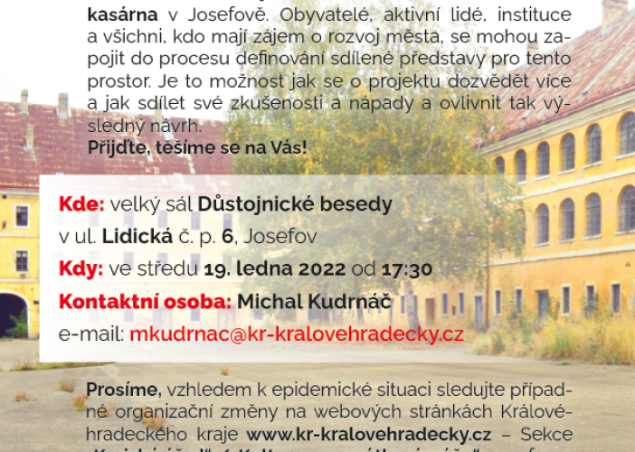 Královéhradecký kraj pořádá setkání k záměru rekonstruovat a oživit Čtvercova kasárna v Josefově.