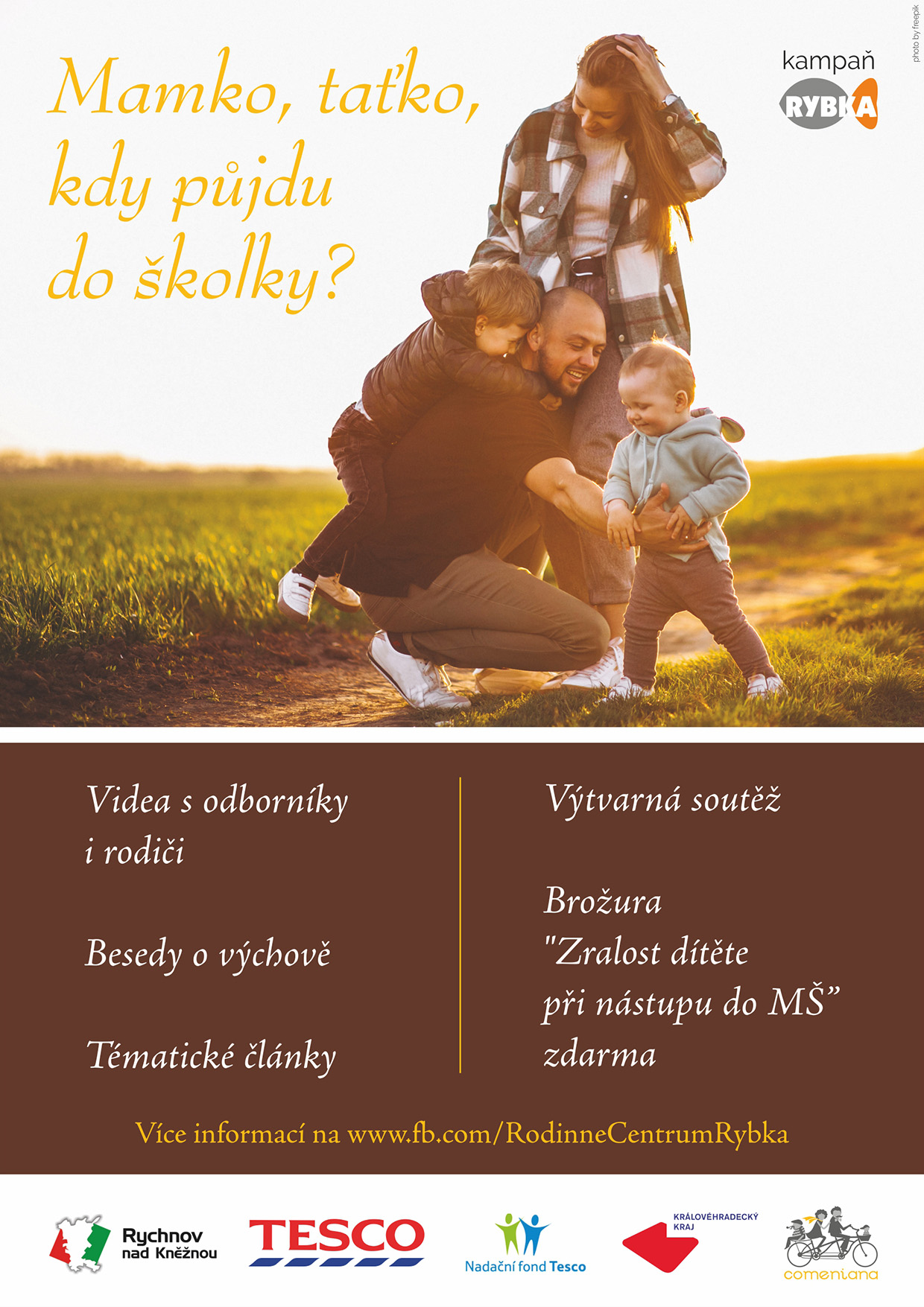 Rychnov nad Kněžnou – 11. 3. 2021 – RC Rybka 1. dubna 2021 spouští kampaň „Mamko, taťko, kdy půjdu do školky?“ s cílem rozšířit povědomí rodičů o tomto důležitém kroku v životě dítěte.