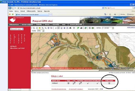 V aplikaci „Pasportizace ÚPD obcí“ (umístěného na adrese http://up.kr-kralovehradecky.cz/upd/ ) byla dokončena úprava velmi užitečné novinky – tj. jednak možnost připojení digitálních dat z katastru nemovitostí (parcelní č. a jiná související data) a to způsobem jiným a mnohem jednodušším a hlavně spolehlivějším než doposud. Namísto připojování vrstev k portálu KN wms službou přes připojení adresy po kliknutí v legendě výkresu stačí nyní v otevřené legendě mapy kliknout levým tlačítkem a pravým zvolit „vložit nad“ a pak se vybere jen jediná možnost a to „+ Katastr – wms služba ČÚZK“. Po kliknutí levým tlačítkem myši se provede výběr a pak je možno tuto načtenou vrstvu rovnou zaškrtnout do mapy.