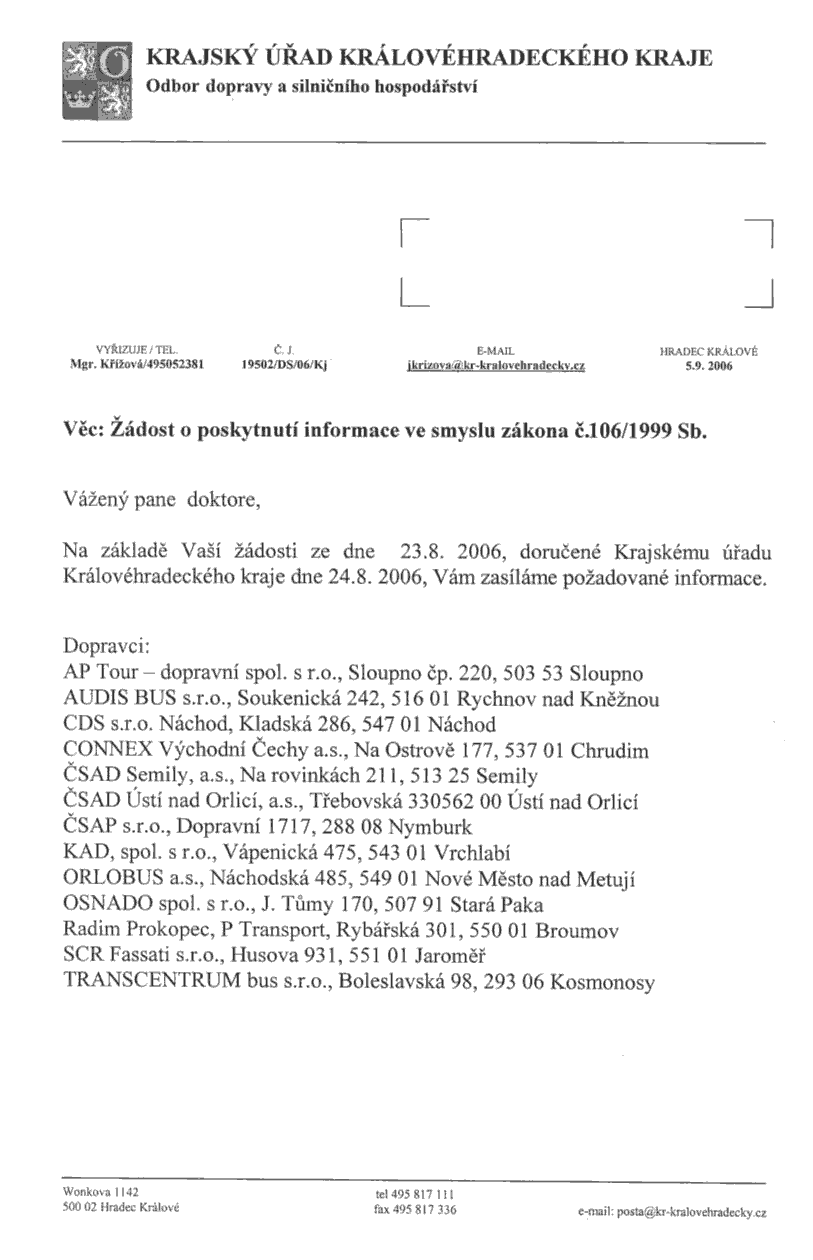 Informace v souladu se zákonem č. 106/1999 Sb