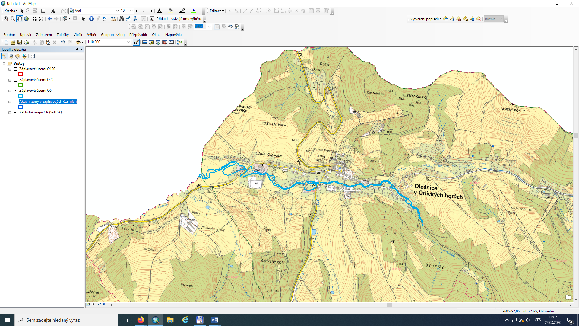 Dále ministerstvo uvedlo, že i z této poskytnuté informace, která neobsahuje jiné mapové vrstvy, může žadatel zjistit polohu hranic záplavového území, neboť v poskytnutých souborech je i informace o umístění kteréhokoli bodu vyznačených hranic záplavového území v souřadnicovém systému JTSK, Krovak EastNorth, a to pomocí identifikačního kříže, jehož souřadnice se zobrazují v pravém dolním rohu náhledu. Pomocí těchto souřadnic pak je možno vyznačené hranice záplavového území zobrazit v kterékoli mapě.