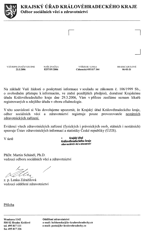 Seznam Lékařů Registrovaných U Zdejšího Úřadu V Oboru Oftalmologie