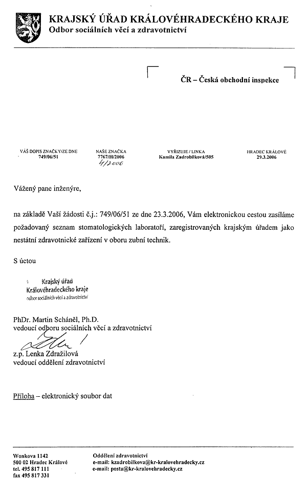 29. 03. 2006 Informace, o které požádala ČR - Česká obchodní inspekce v souladu se zákonem č. 106/1999 Sb